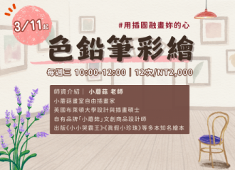 上課用品:色鉛筆、畫紙、橡皮擦(可帶家裡現有材料用具,或於第一節上課介紹材料後,再自行購買)